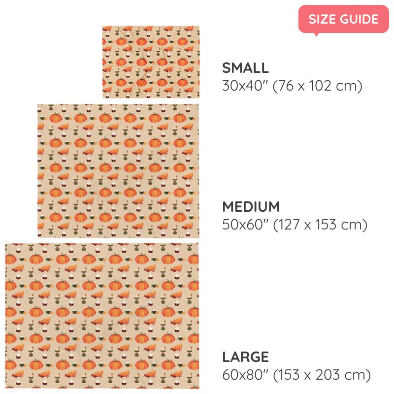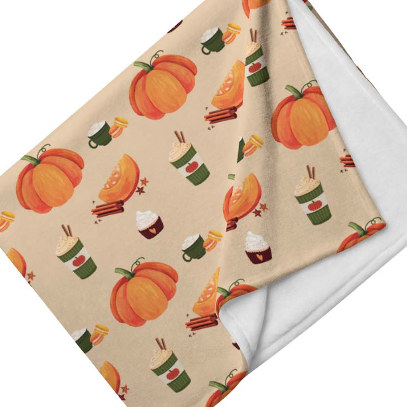 Wrap yourself in autumn cosiness with our Pumpkin Spice throw blanket – a silky-soft treat for chilly mornings, lazy evenings, and everything in between. Featuring a charming seasonal print of pumpkins, lattes, cupcakes, and cinnamon sticks, it’s the ultimate autumn blanket for pups and their parents who love to get cosy in style.