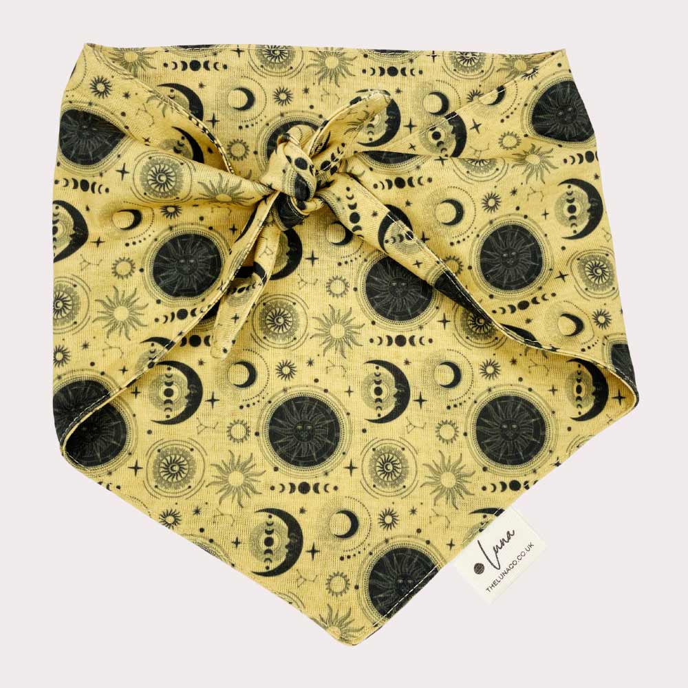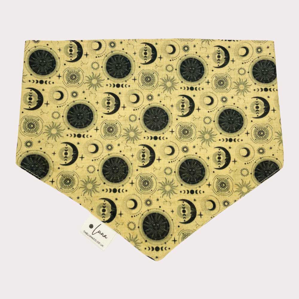 The “SuperNova” Dog Bandana is a cosmic dream — golden stars, moons, and suns scattered across a rich black background, made for pups who were born to stand out. Whether they’re stargazing from the sofa or stealing the spotlight on their morning walk, this design guarantees out-of-this-world style.