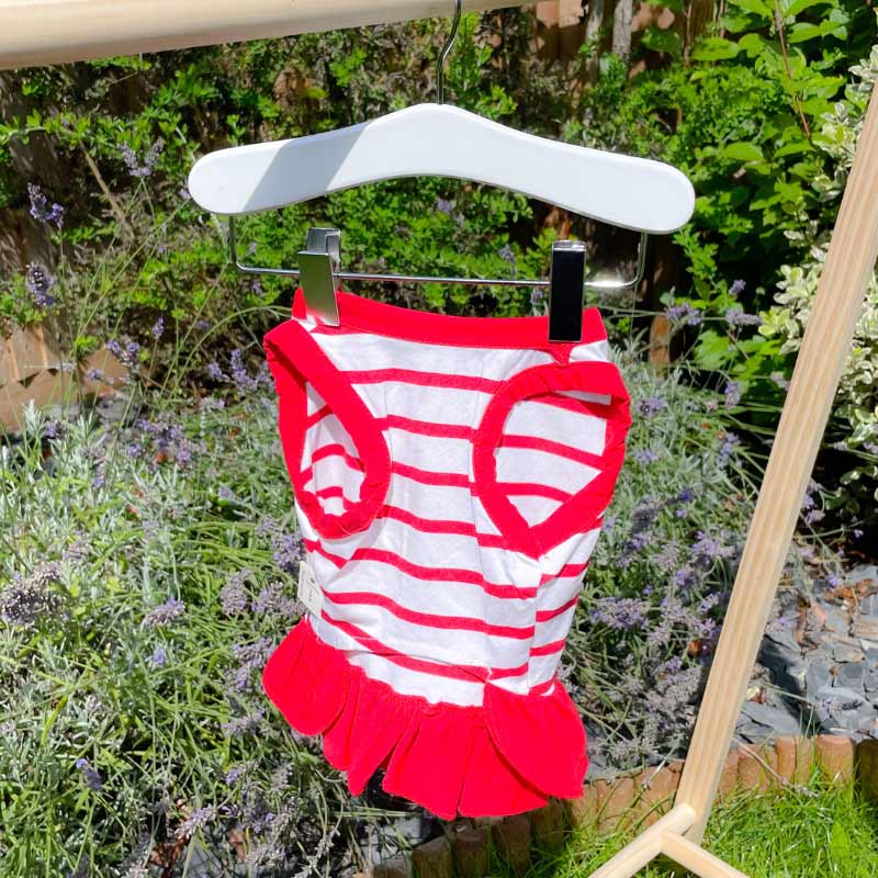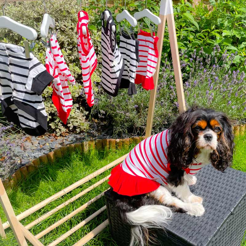 Because some dogs just know how to make an entrance. With vibrant red and white stripes and an ultra-soft cotton finish, this dress was made to turn heads — whether you’re holidaying on the coast or simply heading to the park.