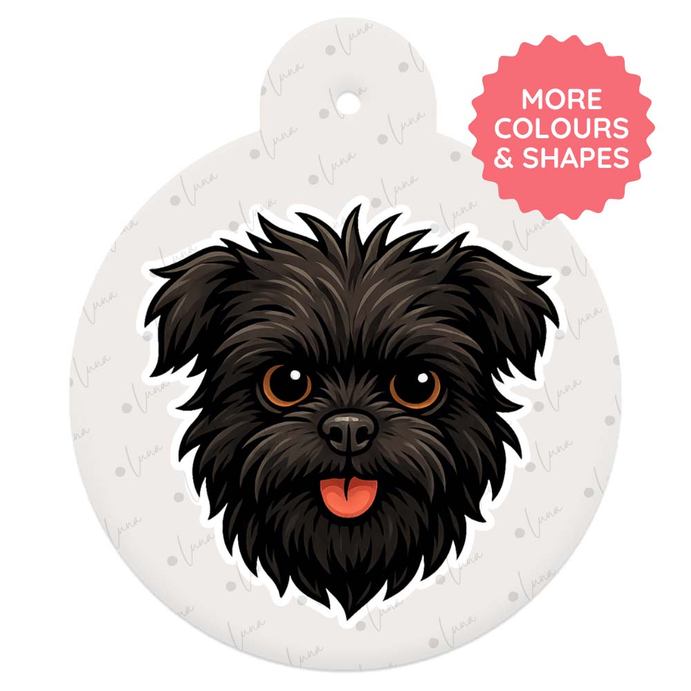 Our cartoon-style tag brings out the playful side of the Affenpinscher, capturing their distinctive face and scruffy silhouette in an irresistibly cute illustration.