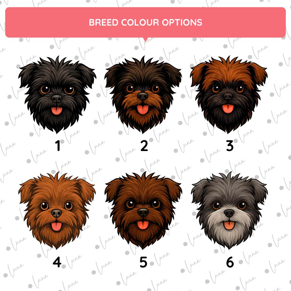 - Custom cartoon-style artwork featuring your choice of Affenpinscher colouring