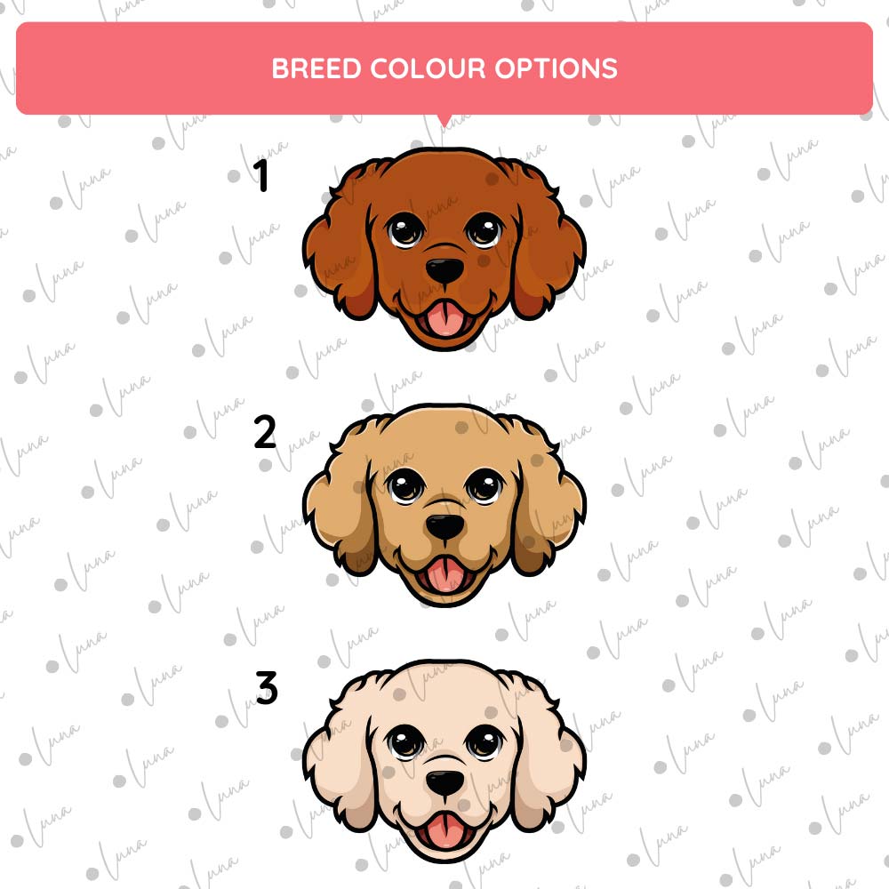 - Cartoon-style Golden Retriever illustration with your chosen breed colouring