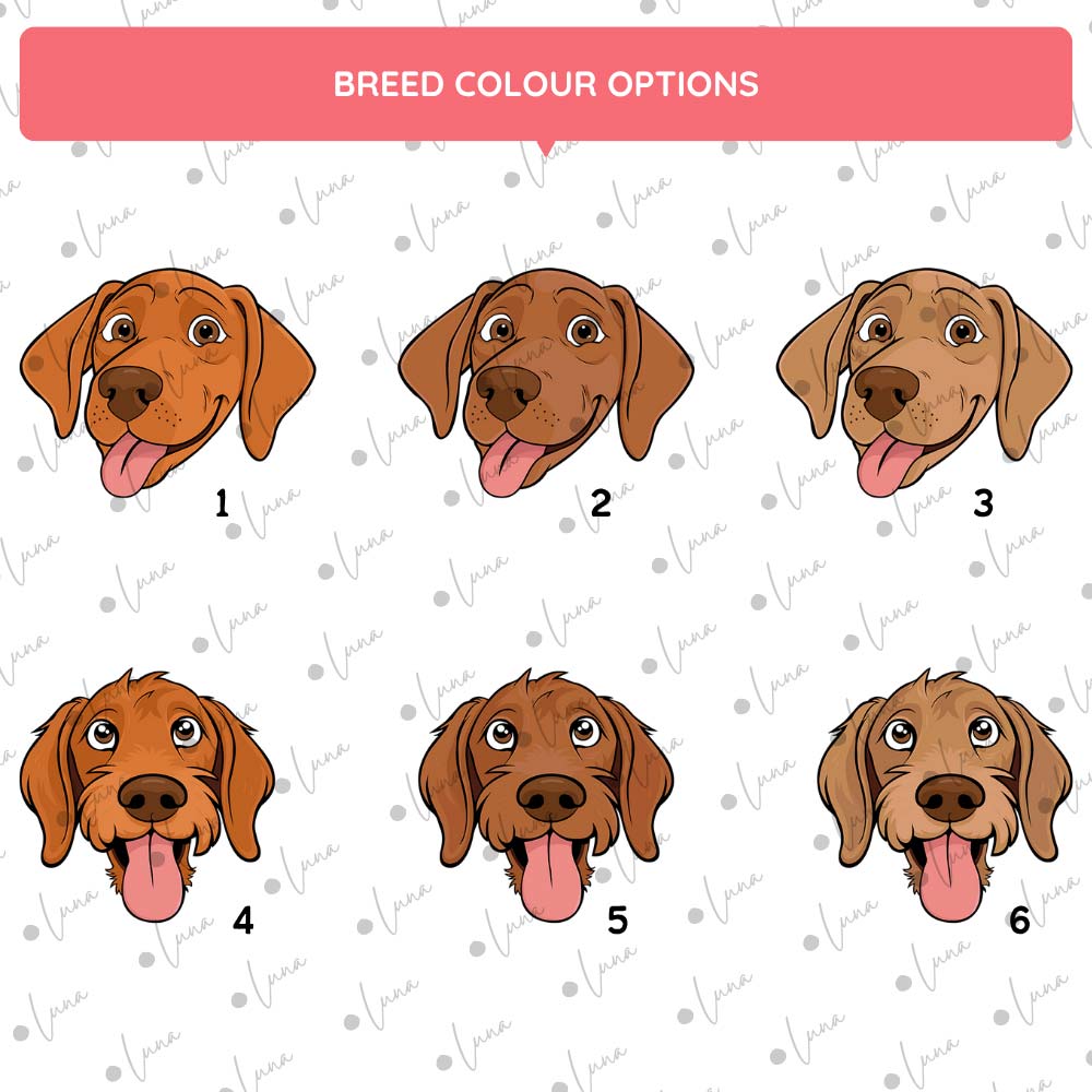 • Cartoon-style Hungarian Vizsla illustration with your choice of coat colour