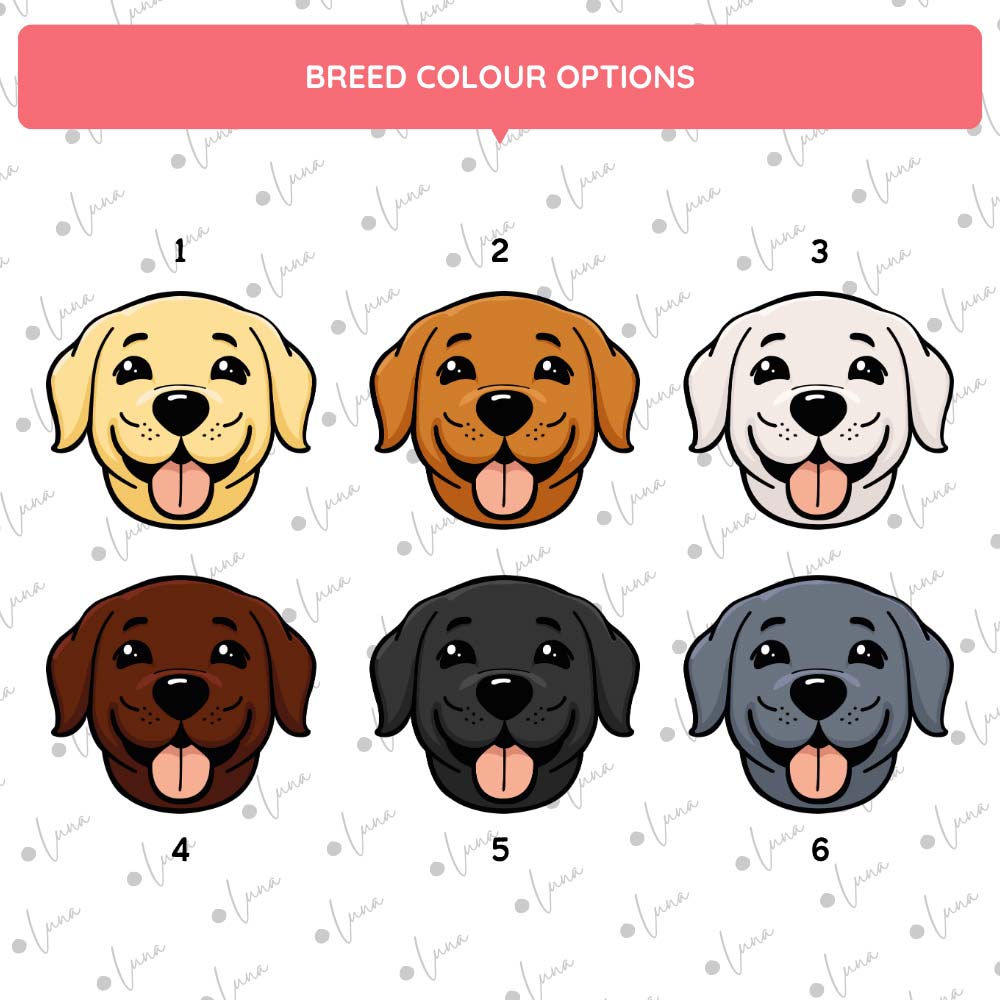 - Cartoon-style artwork with your choice of Labrador colouring