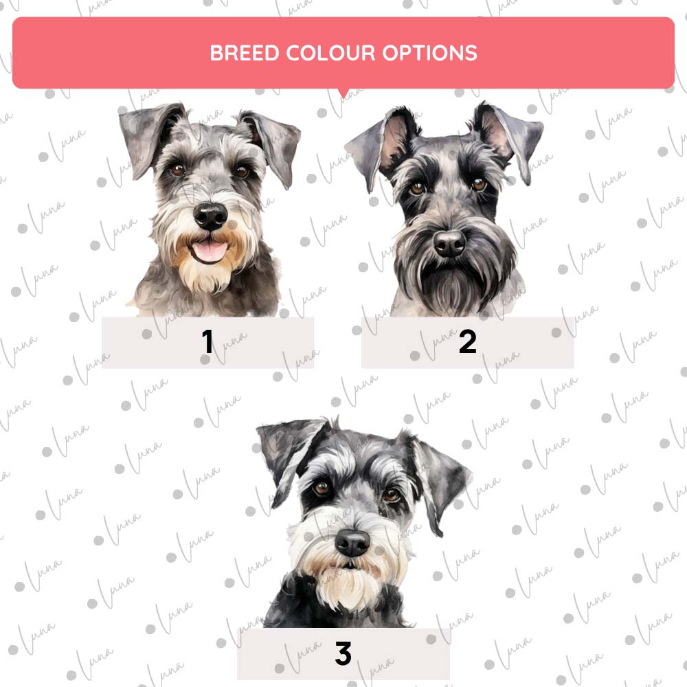 - Watercolour-style artwork with your choice of Schnauzer colouring