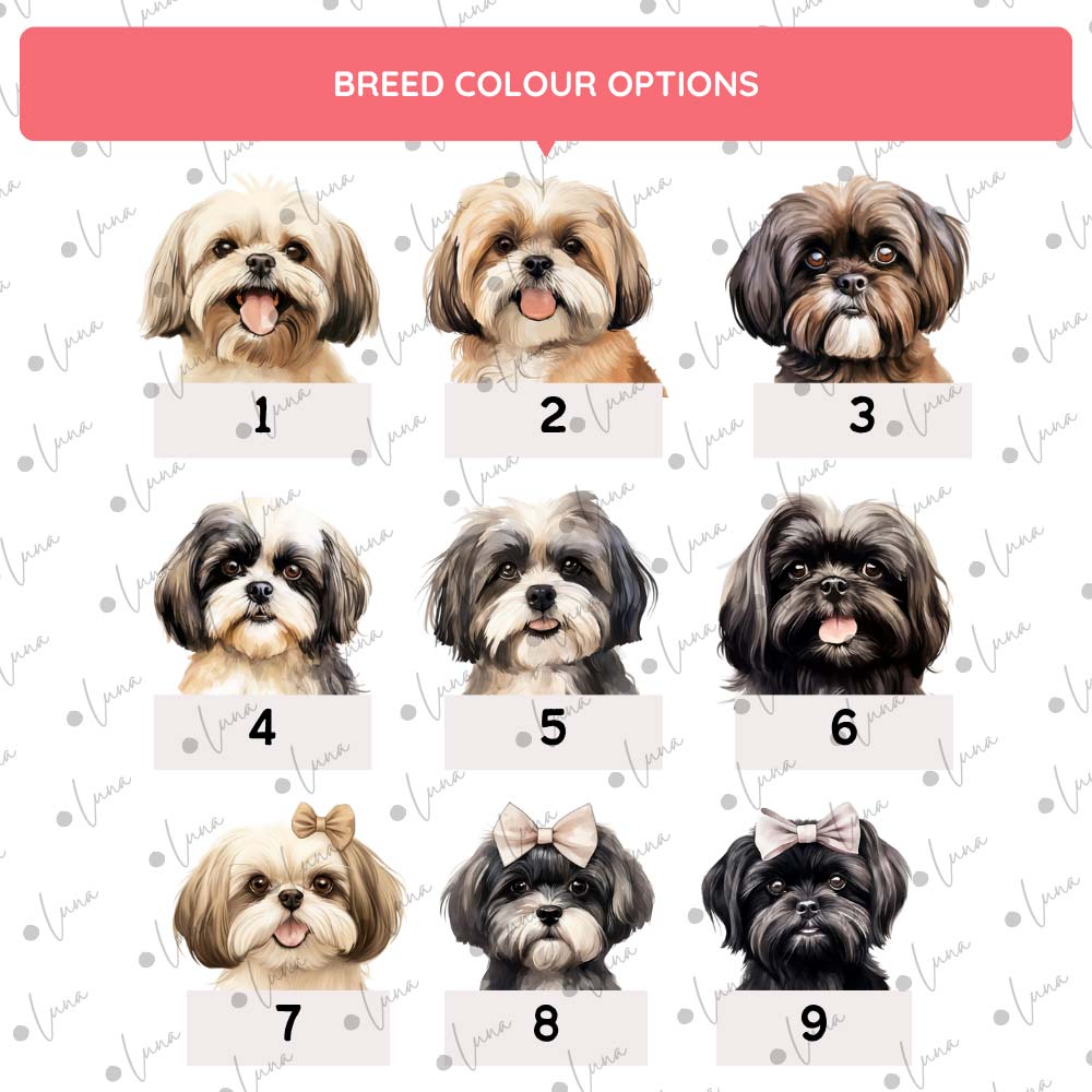 - Watercolour-style artwork with your choice of Shih Tzu colouring