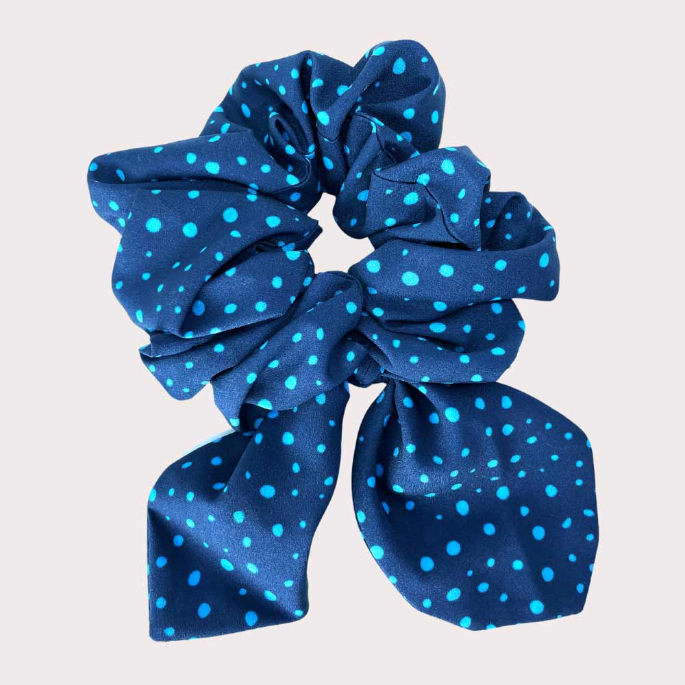 Chic and understated, the Dotty for You Blue scrunchie brings cool coastal vibes to your everyday style. With a rich blue base and subtle sky-blue dots, it’s ideal for dog mums who like their accessories as elegant as their pup’s sit pose.