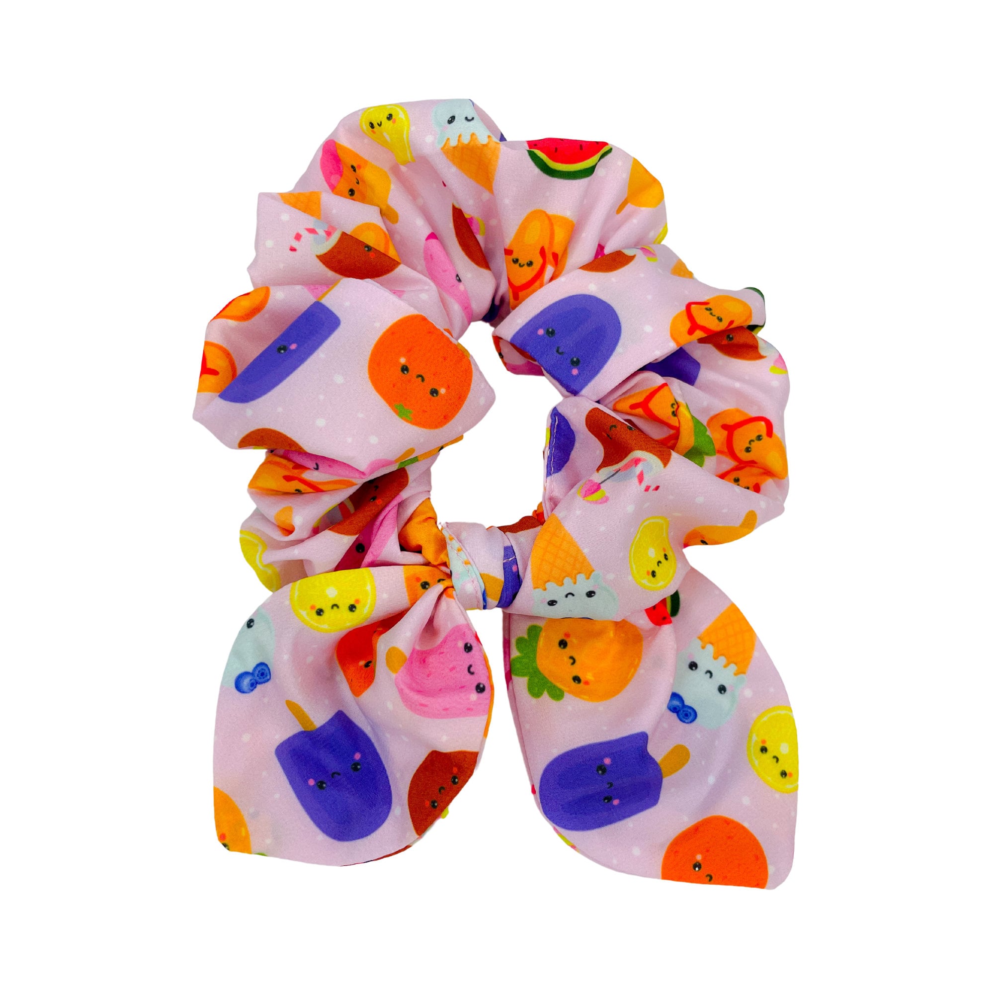 This listing is for one “Tropical Party – Pink” hair scrunchie.
