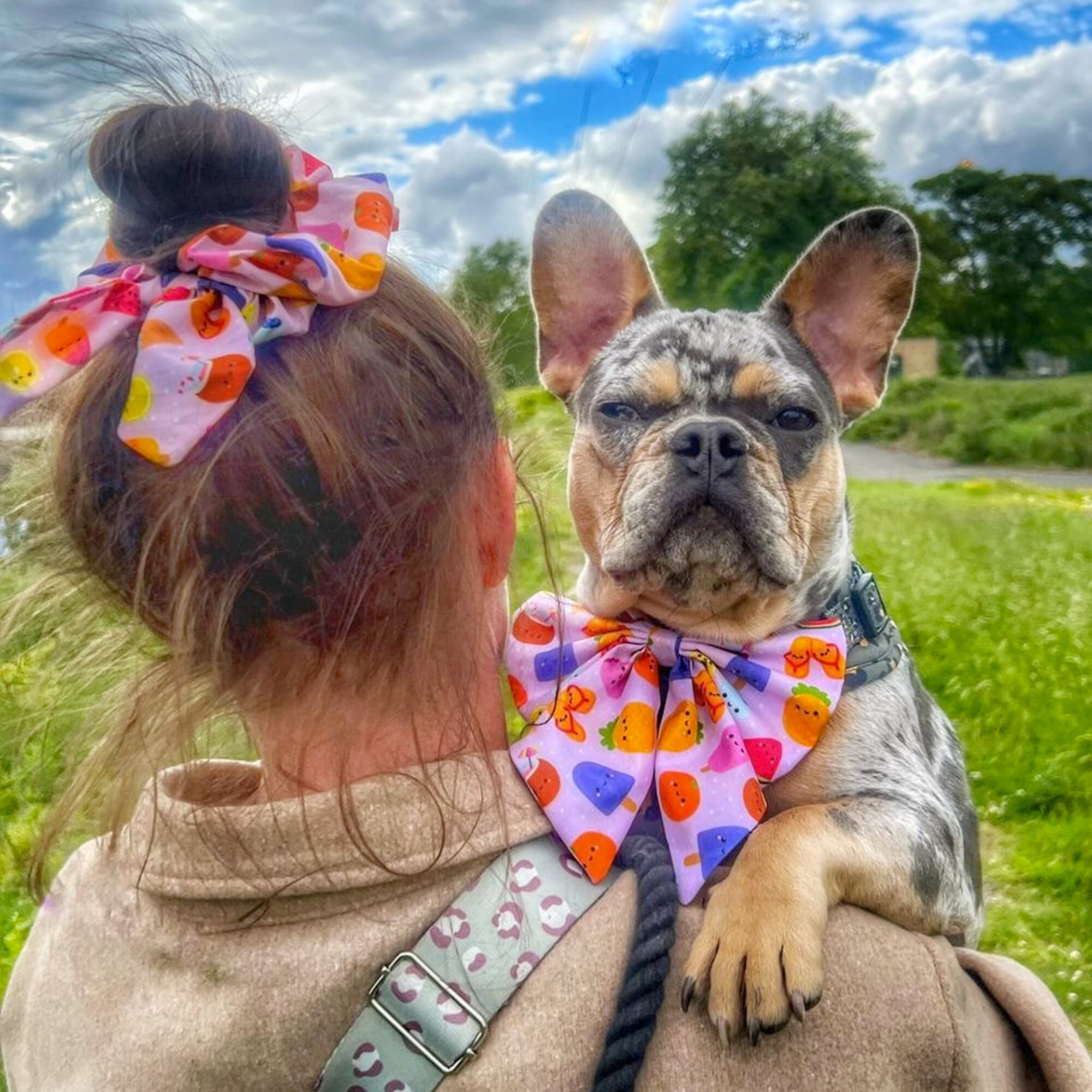 This one’s for the humans! Match your dog’s “Tropical Party – Pink” products with your hair scrunchie in the same pattern.
