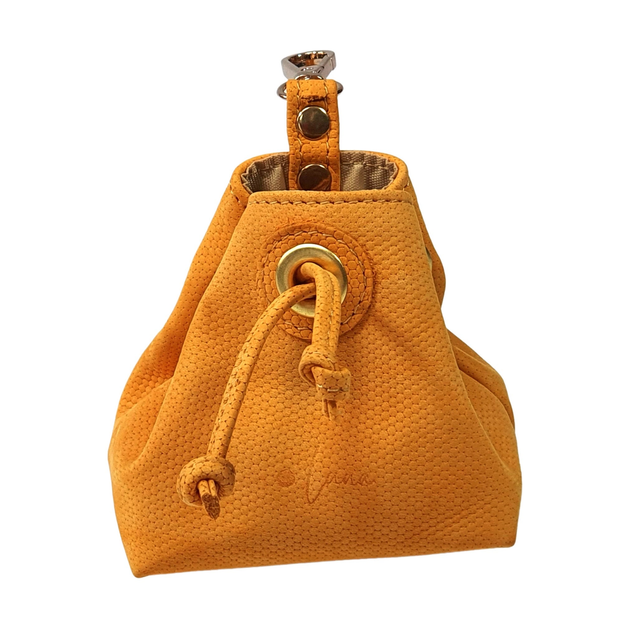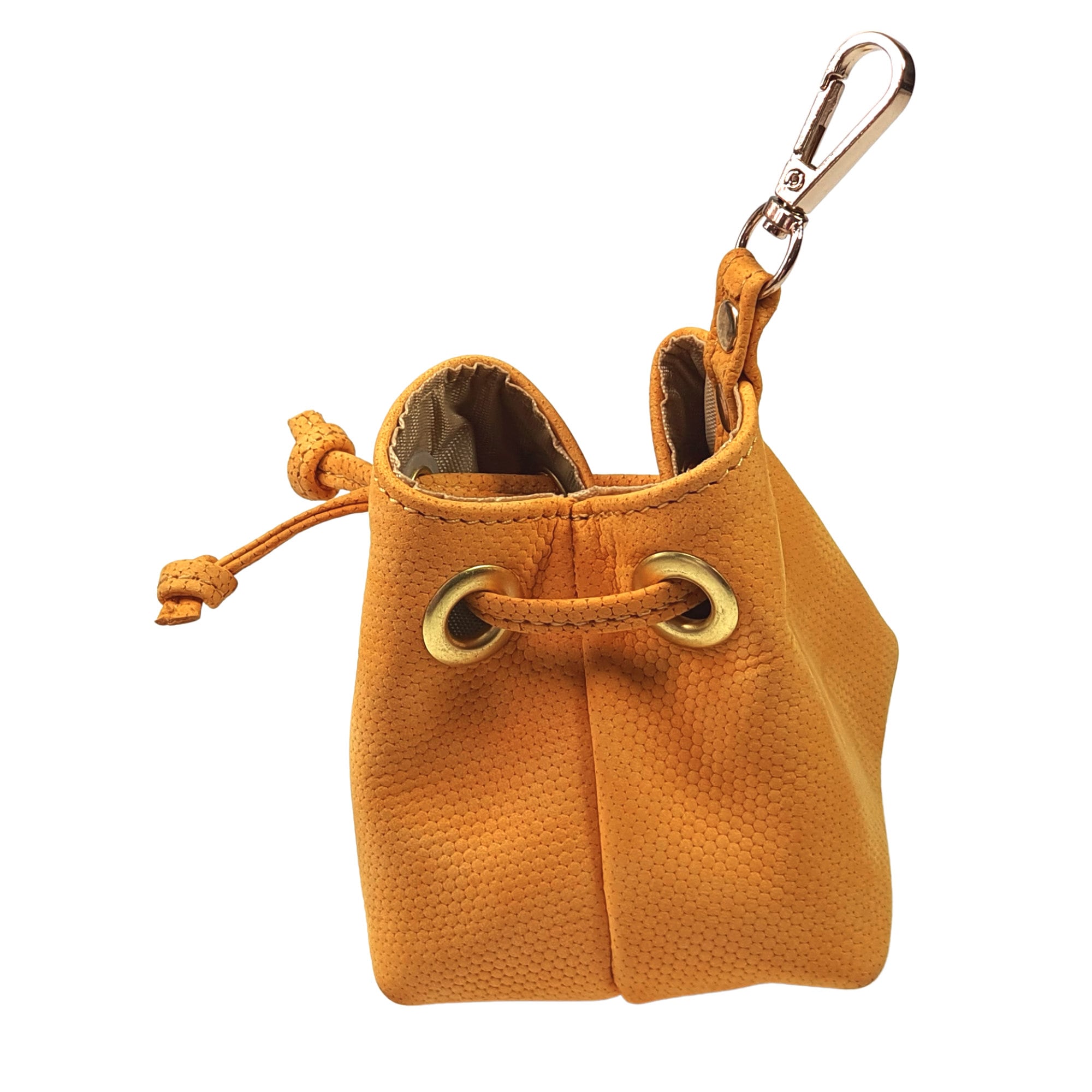 Yellow luxury leather treat bag expertly hand made in small quantities with great attention to detail.