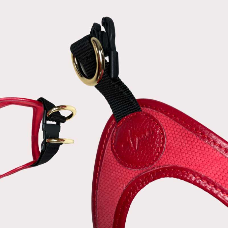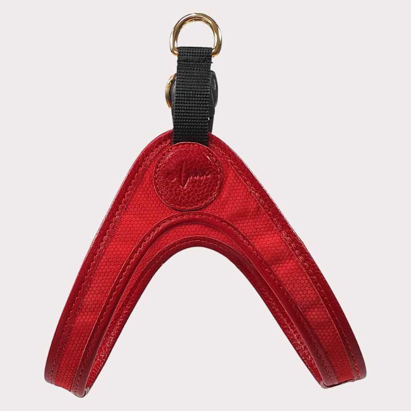 For pups who deserve nothing but the finest, our red luxury leather dog harness is the ultimate in sophisticated style. Handmade in small quantities by expert leather artisans, this harness features buttery soft suede with genuine leather piping and elegant gold hardware — crafted to turn every walk into a runway moment.