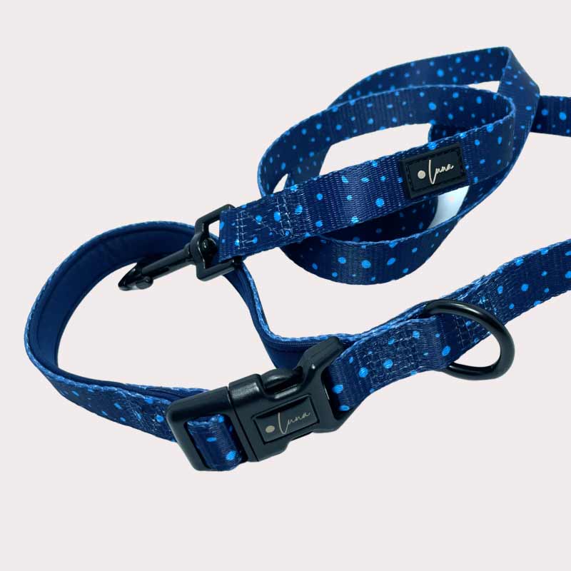 Cool, classic, and easy to love — our “Dotty for You” Blue Dog Lead is a go-to for pups who prefer timeless style with a playful twist. The cheerful dotted print adds personality without fuss, while the sleek black hardware keeps it looking sharp.