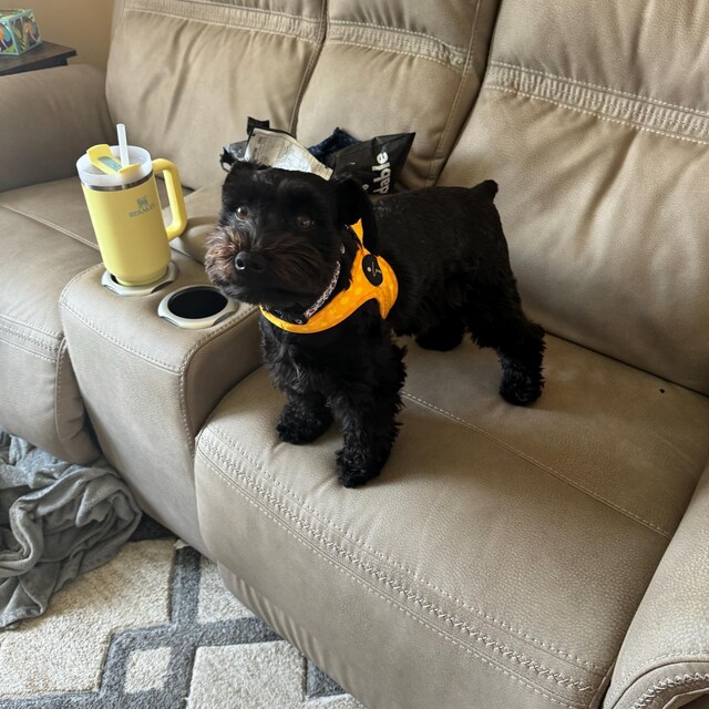 I have a black mini schnauzer and this fits her perfectly and so so less constricting than her other one. The material used is soft and durable and the yellow looks great on her.